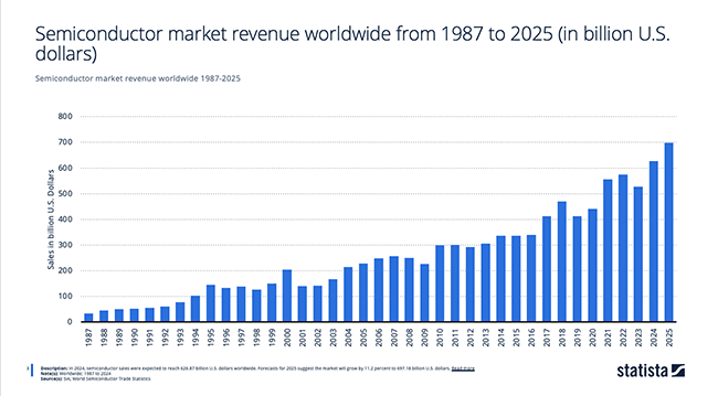 Semiconductor Market Revenue 1987 to 2025- Source : Statista
