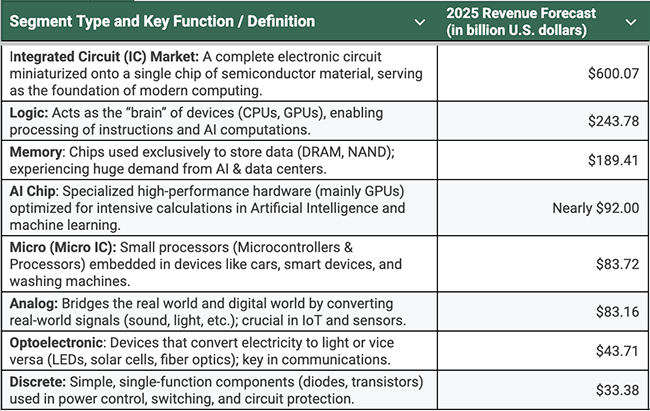 Types of Semiconductors – Definition and Projected Revenue Forecast : 2025