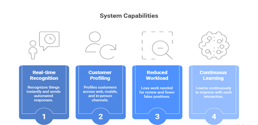 AI doesn’t just find fraud; it also helps stop it from happening in the first place. Predictive analytics lets systems figure out what debts will happen before they happen. AI immediately changes the level of risk and starts taking steps to stop problems by linking transaction context and behavioural trends.