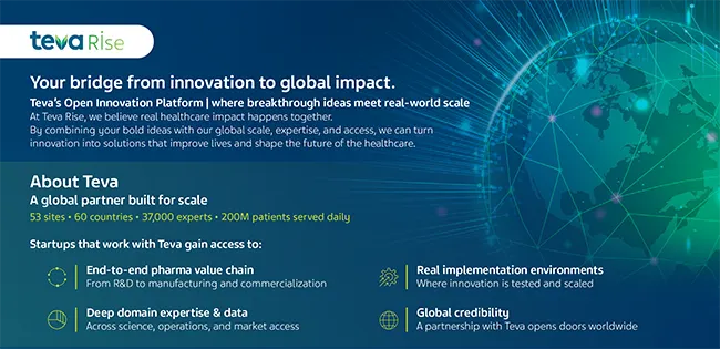 Richard Francis, Teva‘s President and CEO, said, “We are accelerating our journey to become a modern, innovative biopharmaceutical leader. Teva Rise is a powerful example of our Pivot to Growth strategy in action – bringing together the best minds and technologies to solve real-world challenges faster. By opening our doors to global innovators, we’re not just modernizing how we work; we’re transforming the future of healthcare for patients everywhere.”