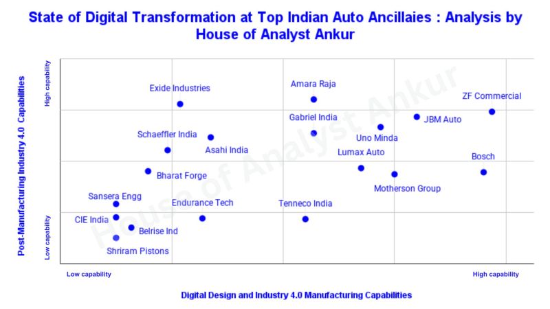 2. JBM Group, Motherson Group and Uno Minda meet expectations and seem to be on solid track to achieve their designated Industry 4.0 targets. Bosch India has strong potential to up their post manufacturing Industry 4.0 capabilities. With Motherson building its own tech services firm, the developments are expected to be fast there..
