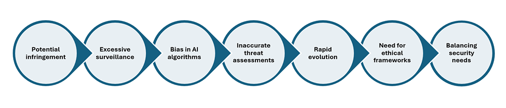 ✦ Potential infringement on privacy and civil liberties due to autonomous AI decision-making.