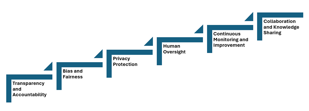 ✦ Bias and Fairness: To prevent discrimination, it is crucial to regularly audit AI algorithms for bias. Training data should be diverse, and results should be monitored to ensure fair treatment of all users and entities.
